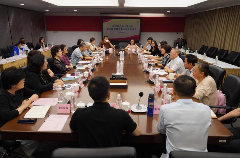 6月14日下午,上海市民办中小学协会第四届理事会第六次会长会议在中华艺术宫举行。第十二、十三届全国政协委员、市政府参事、中华职教社常务副主任、中国民办教育协会常务副会长、市民办中小学协会会长胡卫,市教委二级巡视员、民办教育处处长赵扬,市教委基础教育处调研员龚柳,中华艺术宫党委书记王一川、协会常务副会长张建中、协会副会长等出席会议。国家督学、上海市民办中小学协会常务副会长杨国顺主持会议。